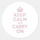 Pink Lettered Keep Calm and Carry On Classic Round Sticker