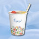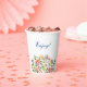 Personalise this Bright Floral Bridal Shower Paper Cup, designed to infuse your celebration with an air of elegance and charm. Delicately adorned with the timeless beauty of peach, blush pink and lilac roses, intertwined with soft greenery, this cup exudes a sense of romance and sophistication. Against a backdrop of crisp white, the intricate floral arrangement stands out, creating a captivating focal point that effortlessly complements any bridal shower decor. The blend of subtle hues and lush blooms evokes a sense of tranquillity and refinement, perfect for an occasion celebrating love and new beginnings, combining chic design with practical functionality. Whether you're sipping on refreshing beverages or indulging in delectable treats, this cup adds a touch of femininity and grace to every moment.