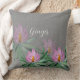 Pink Lilac Lotus Watercolor Art Monogrammed Cushion
