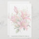 Pretty floral stationery done in white, with faint graphics of pink lilies. Lovely everyday stationery or for special occasions. Personalise the green text, at the foot of the page, to suit your needs. Makes a nice gift too.