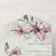 Pink Lilies on Distressed Sage Green QR Code All In One Invitation