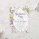 Graduation Party invitation for a sweet elegant feminine girl. Beautiful soft pastel pink and green watercolor painting with pink lily flower and greenery and geometric gold lines in the frame. Feminine floral with a modern edge.