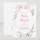 Pink Lily Flowers Green Leaves Baby Shower Invitation