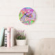 Pink, Lime Green and Blue Bubbly Art Large Clock