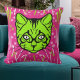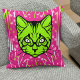 Pink Lime White Black Modern Cute Cat Colourful Cushion
