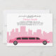 Stylish invitations feature a chic vector illustration of a pink limousine on a light pink skyline background. Perfect for bachelorette parties, bridal showers, 21st birthday parties, cocktail parties, girls night out, and more! Visit our store for matching products.