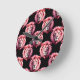 Pink Lion Head Animal Pattern Design - Black Round Clock
