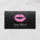 Pink Lips Makeup Artist Black Glitter Modern Business Card