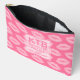 Add your initials and short two line text eg Makeup Artist to this cute cosmetic accessory pouch with pink lipstick pattern design.