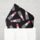 This black tissue paper featuring a pattern of pink lipstick with a polka dot casing.