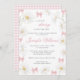 Celebrate the arrival of your little one with our cute shabby chic Coquette 'Little daisy in on the way' themed baby girl shower invitation. Featuring cute pink bows and sweet daisy flowers with pink gingham pattern at the back, this invitation sets the perfect tone for a preppy spring or summer celebration.