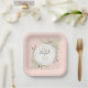 Little Miss ONEderful first birthday paper plate featuring elegant greenery on a pink background and stylish typography. Designed by Thisisnotme©
