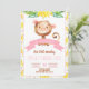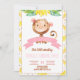 Pink Little Monkey Baby Girl Birthday Party Invitation