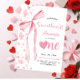 Little Sweetheart Valentine Birthday Invitation featuring a watercolor PINK bow and heart accents.