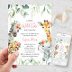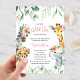 Cute a Little Wild One is On the Way baby shower invitation features pretty greenery with cute watercolor safari animals. Personalise with your details.