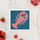 Coral pink lobster image on dark blue napkins. Favourite summer seafood design has matching paper plates.
