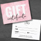 Pink Watercolor Logo Business Gift Certificate Business Card. Add your logo to make it your own. A fun and simple gift certificate for corporate brands, small businesses, or individuals like makeup artists, estheticians, hair stylists, and so much more! Right now it is a pink, black and white colouring, but you can actually switch out any of the colours to whatever you'd like to use! The white watercolor pattern will stay overlayed over the colour you choose for the background. A mix of modern and script typography for a professional but chic look.