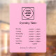 Show your business hours in style with this pink custom logo design. Perfect for offices, shops, or restaurants, this professional display allows your business logo and opening times to stand out. Sleek, eye-catching, and branded—ideal for creating a polished storefront impression.