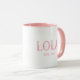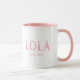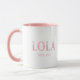 Lola coffee mug design with established year featuring a pink stamped font set on a white background. Click customise to edit the background colour!. Visit our shop to view this mug in a large assortment of grandfather names.