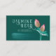 Pink Lotus Flower Bud for Massage Therapist Green Business Card