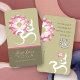 This modern and spiritual design features an original illustration of a beautiful pink lotus flower with the hindu spiritual ancient symbol of Om or Aum written in brushed hand drawn calligraphy and a silhouette of a person in a standing yoga pose as part of the om symbol.