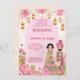Pink Lotus flowers garlands lantern Indian wedding Invitation