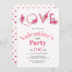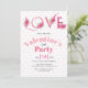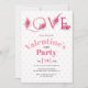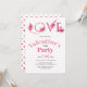 Pink LOVE and roses Valentines Day party Invitation. Celebrate Valentine's Day with an air of sophistication and romance by inviting your guests with our exquisite party invitations. These invitations are designed to set the perfect tone for your Valentine's Day celebration. The design features a stunning ombre pink pattern that beautifully incorporates a scattering of hearts, creating a visually captivating effect. The word "LOVE" is presented in an elegant and decorative typography, showcasing a subtle yet striking transition from a delicate light pink to a richer, darker pink tone. Adding to the charm, the invitation is embellished with delicate and romantic bouquets of pink rose flowers, evoking feelings of love and warmth. To further enhance the romantic ambiance, the reverse side of the invitation unveils a delightful pattern of ombre pink hearts, a subtle and sweet surprise that will surely delight your recipients. This invitation is the perfect way to announce your stylish and heartfelt Valentine's Day party.