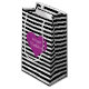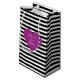 Pink Love Heart Black & White Striped Pattern Text Small Gift Bag