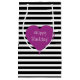 Personalised gift bag with a pink heart on black and white striped pattern design. To personalise the text on the front and back side simply type your own name, text and date in the template fields. Matching party accessories available.