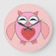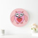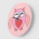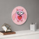 This awesome clock features a cute cartoon of a pink owl with sleepy eyes, a small beak and cute little feet. The owl has a big red love heart in the middle of its belly and wings wide open ready to give someone a big hug.