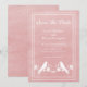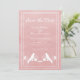 Elegant and simple Wedding save the date invite featuring a pair of lovebirds resting on a floral vine against a Pink background. This design is a unique choice for announcing a modern wedding. Easy to customise with your wedding details. Click "Customise It" to find more personalisation options.