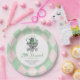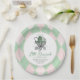 These "Lucky Little Shamrock" feminine baby shower paper plates feature a chic hand-drawn Irish Victorian baby carriage with adorned with a shamrock and soft green tones, all against an adorable matching pink and green argyle pattern. Personalise with event details. Ideal for March baby showers, welcoming an Irish baby girl or a celebration around St. Patrick's Day!