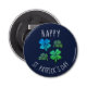 Pink Lucky Shamrock Clover Happy St. Patrick`s day bottle opener. Three shamrocks on navy blue background. Clovers with four leaves for the luck.