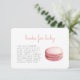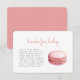 This cute baby shower enclosure card features a watercolor illustration of a pink macaron cookie. Above, the words "books for baby" appear in trendy pink handwriting script. The editable message is in gray sans serif font. The back of the card features a white geometric pattern on a pink background. Ideal for a girl's baby shower.