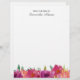 Pink Magenta Flowers Watercolor Notes Custom Letterhead