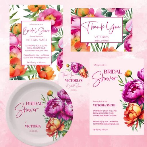 Pink magenta peach peonies elegant bridal shower template paper cups personalised tableware decor, vibrant bold colours modern casual typography