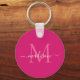 Simple Pink Magenta White Monogram Elegant Modern Script Keychain