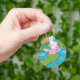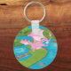 A pink magic dragon flying across a landscape. This design looks really effective on these Keychain