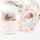 Simple and whimsical floral birth announcement card featuring oval photo with pink hand drawn wildflowers around it. Add your photos, birth stats, and a message! Vertical photo works best on the front.