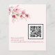 Pink magnolia spring flowers with light watercolor splash budget wedding invitation with QR RSVP code, you have to generate qr code, download image and then replace it on a template.