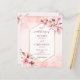 Pink magnolia spring flowers with light watercolor splash geometrical shape budget wedding invitation with QR RSVP code, you have to generate qr code, download image and then replace it on a template.