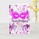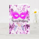 The bright pink tones and playful party elements give the card a fun, festive feel that makes it perfect for birthdays of all ages. Inspired by masquerade parties and joyful celebrations, the colorful artwork creates a unique and eye-catching greeting card that stands out from traditional birthday cards.