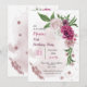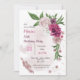 dreamy romantic pink burgundy mauve and white flowers and green leaves botanical birthday invitation