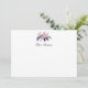Elegant personal stationery card features a top border of purple and blush pink flowers and buds with cascading green botanicals. Personalise with your name, monogram or business name in chic hand lettered style calligraphy script.