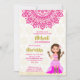 Pink mehndi mandala cute Indian girl cartoon Invitation