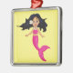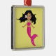 Pink mermaid art cartoon of a cute girly mermaid with black hair and a pink tail on a customisable colour background.