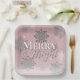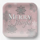Pink Merry and Bright Snowflakes Christmas Paper Plate