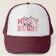 Pink Merry And Bright Typography Groovy Christmas Trucker Hat