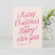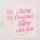 Pink Merry Christmas and Happy New Year signature Holiday Card