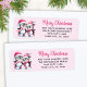 These personalised pink Christmas return address labels feature the "Merry Christmas" saying in script font and a couple of cute penguin ice skaters in pink apparel. The template makes it easy to type your address before ordering.